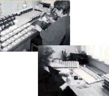 Nun folgt das Zusammenleimen der gedrehten Einzelteile. Bevor der Rohkörper grundiert und anschließend geschliffen wird, beschnitzt man ihn, wie der Entwurf es angibt. Zur farbigen Fassung, die vornehmlich leuchtende Farben (Rot, Blau, Grün, Gelb und Schwarz) und eine ausgewogene Ornamentik aufweist, dienen Leim- und Plakatfarben, Spiritus- oder Nitrolack. Schließlich werden Bart- und Kopfhaare aufgeklebt.Die Werkstätten tüfteln ständig neue technische Feinheiten aus, die den Produktionsvorgang beschleunigen und die Arbeitsproduktivität erhöhen.